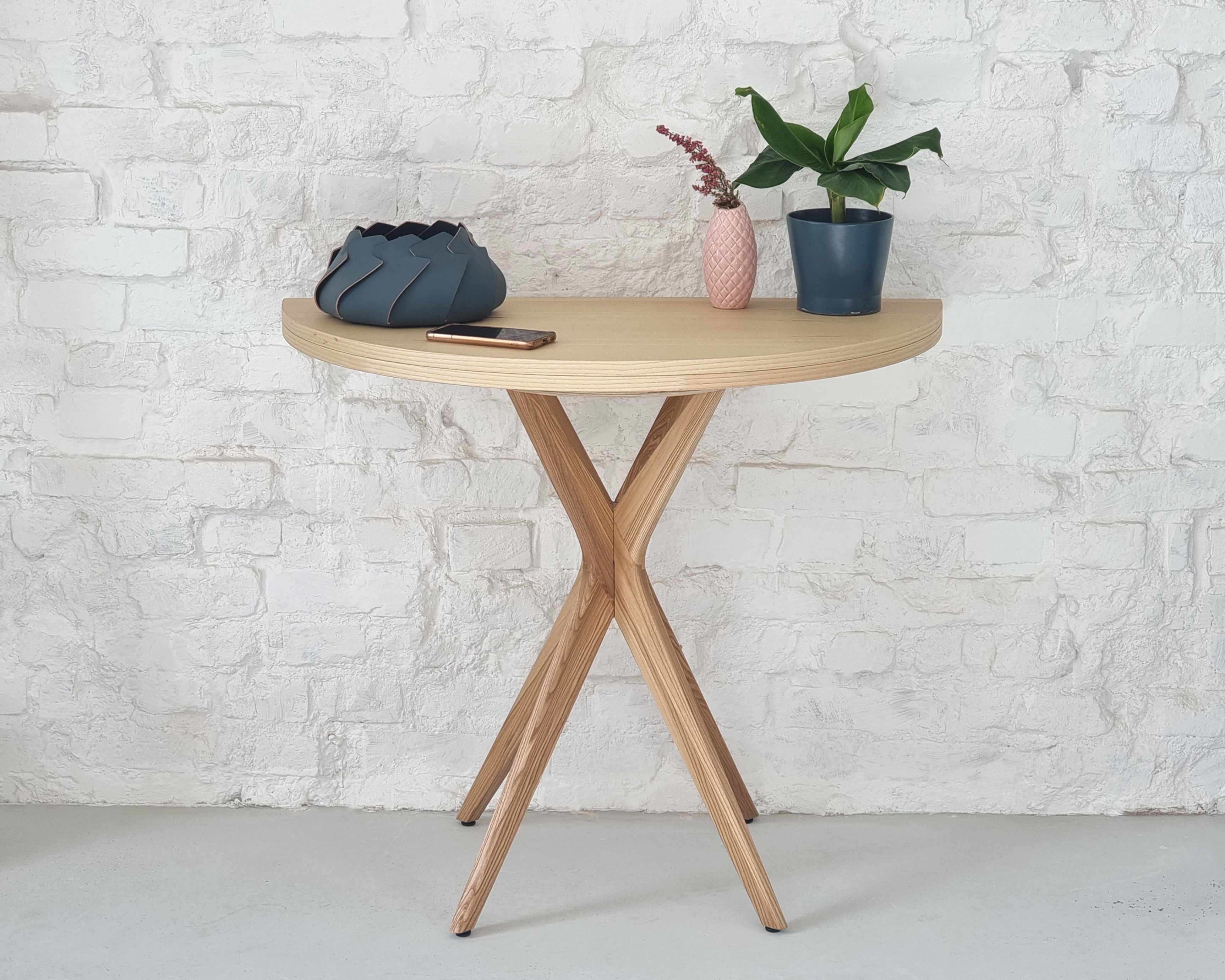 Der kompakte Halbmondtisch Mawi eignet sich hervorragend als kleiner Esstisch, Konsole oder Tisch im Eingangsbereich. Nutzen Sie ihn für schnelle Mahlzeiten, als praktischen Platz für Schlüssel und Telefon oder für eine einladende Gestaltung des Eingangsbereichs.