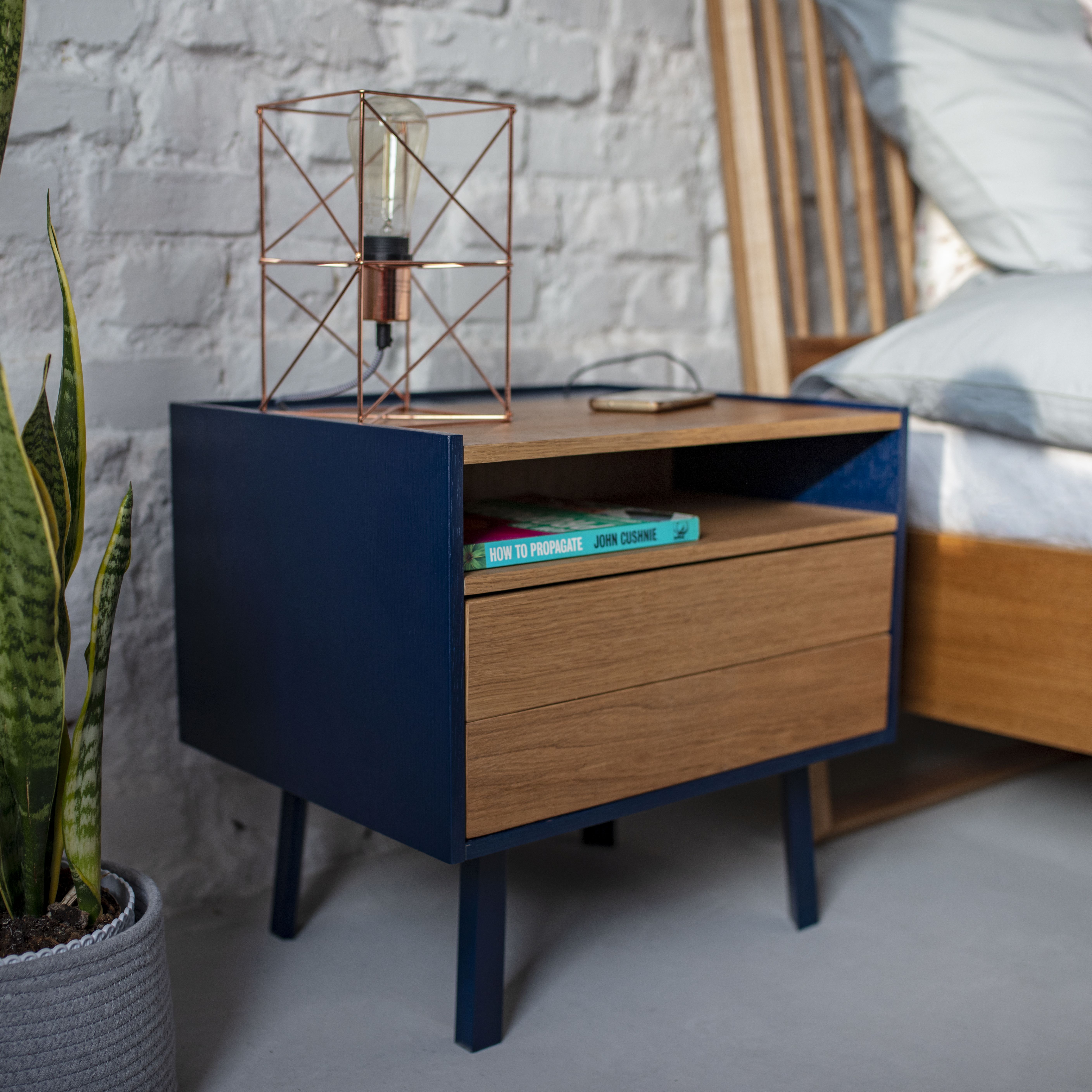 DIAMOND 2 Drawer Bedside Table - 50x40x47cm - Oak / Navy Blue