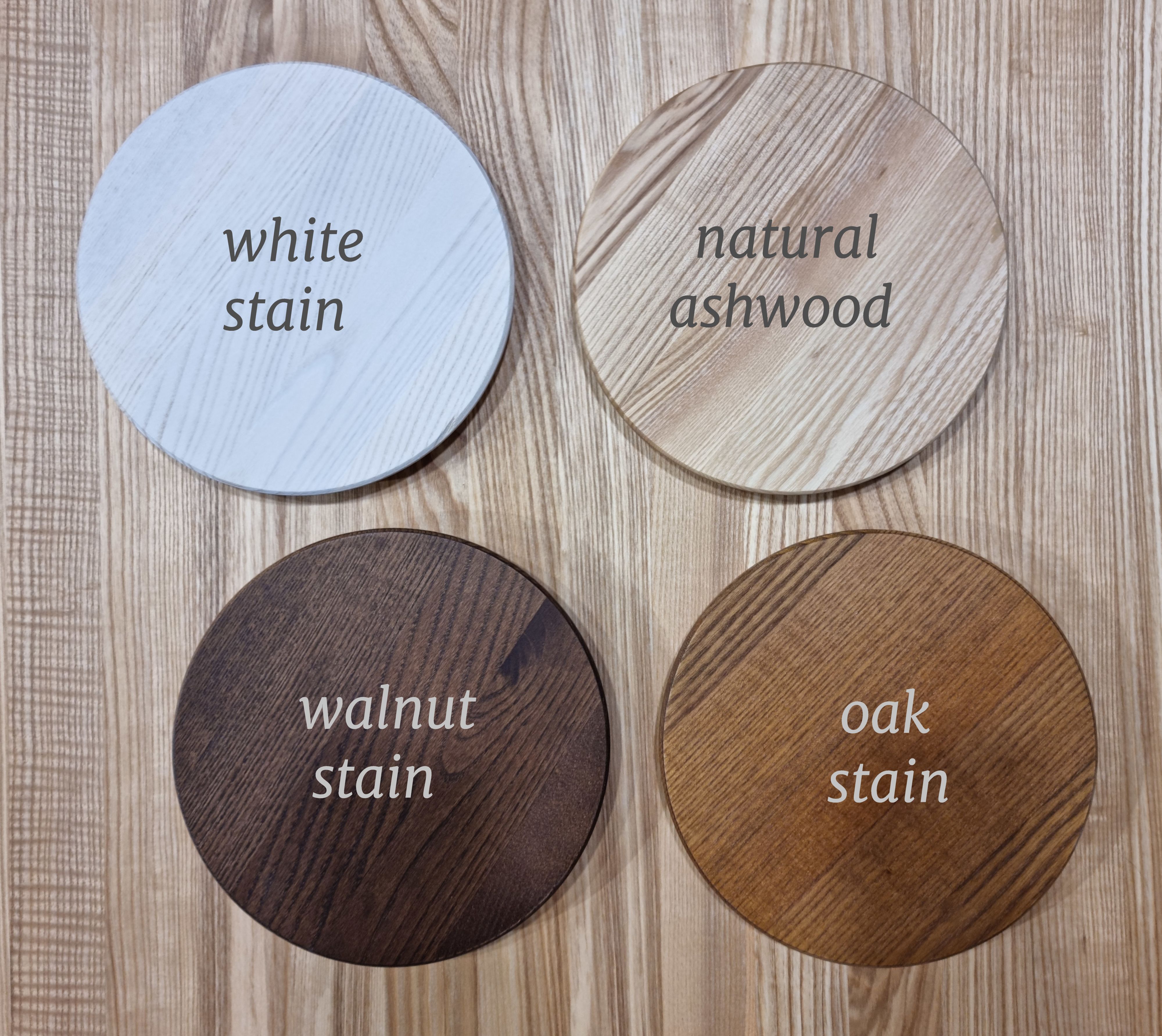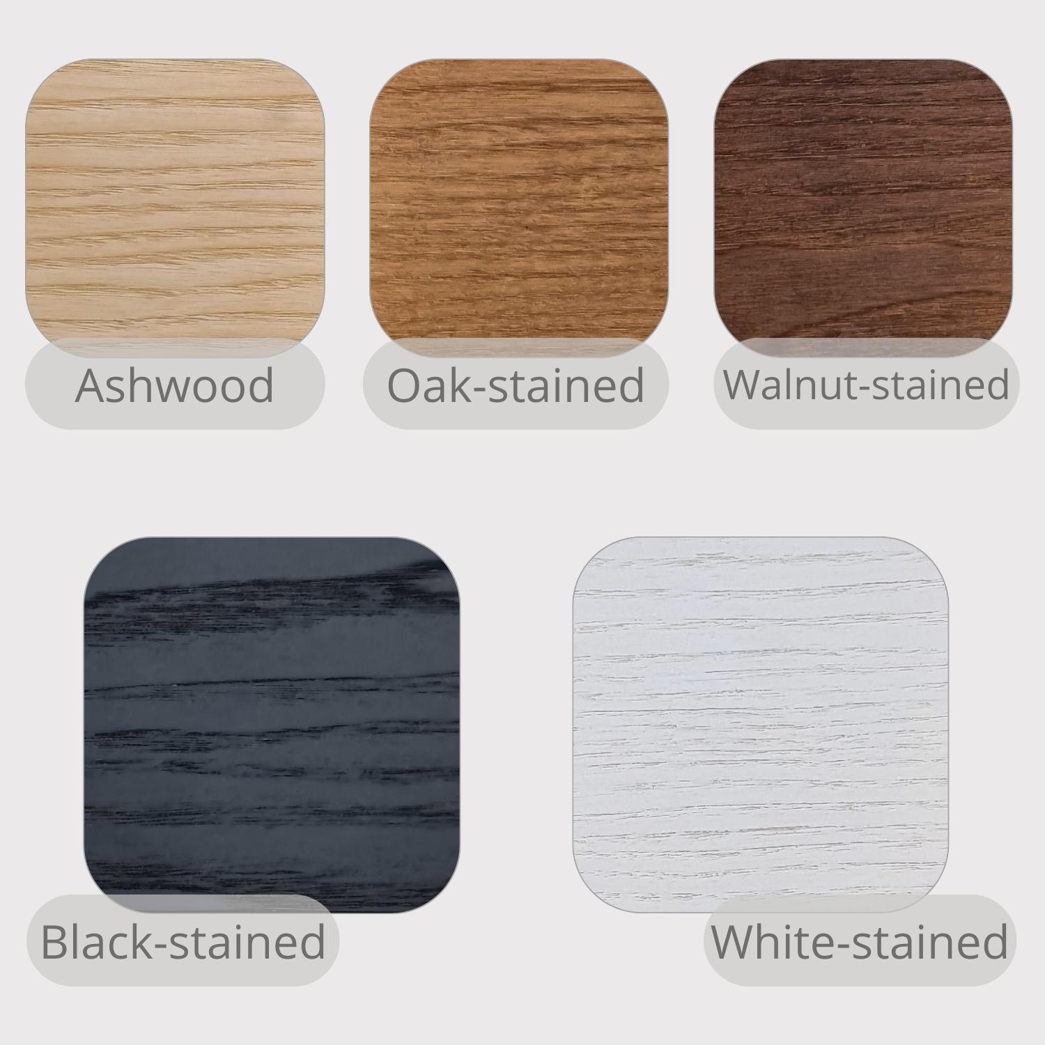 Ashwood is a hardwood known for its strength, durability, and beautiful grain. It’s an excellent choice for furniture that is used daily, thanks to its natural shock resistance—it won’t dent or crack easily. The straight, attractive grain gives ash furniture a clean and refined look, and the wood takes stains particularly well. That’s why we offer our pieces in a range of finishes: natural ash, oak-stained ash, walnut-stained ash, black, and white.