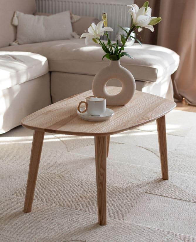 Take a look also at the ENDOCARP coffee table with an unobvious, trapezoidal shape. This is surely a very interesting option as the Endocarp is available in three different dimensions: 110x66, 80x48cm, and 68x41cm making it a semi-nesting solution. It allows you to tuck the smaller coffee table under the larger one to save floor space on weekdays and provide more space on weekends when guests arrive.
