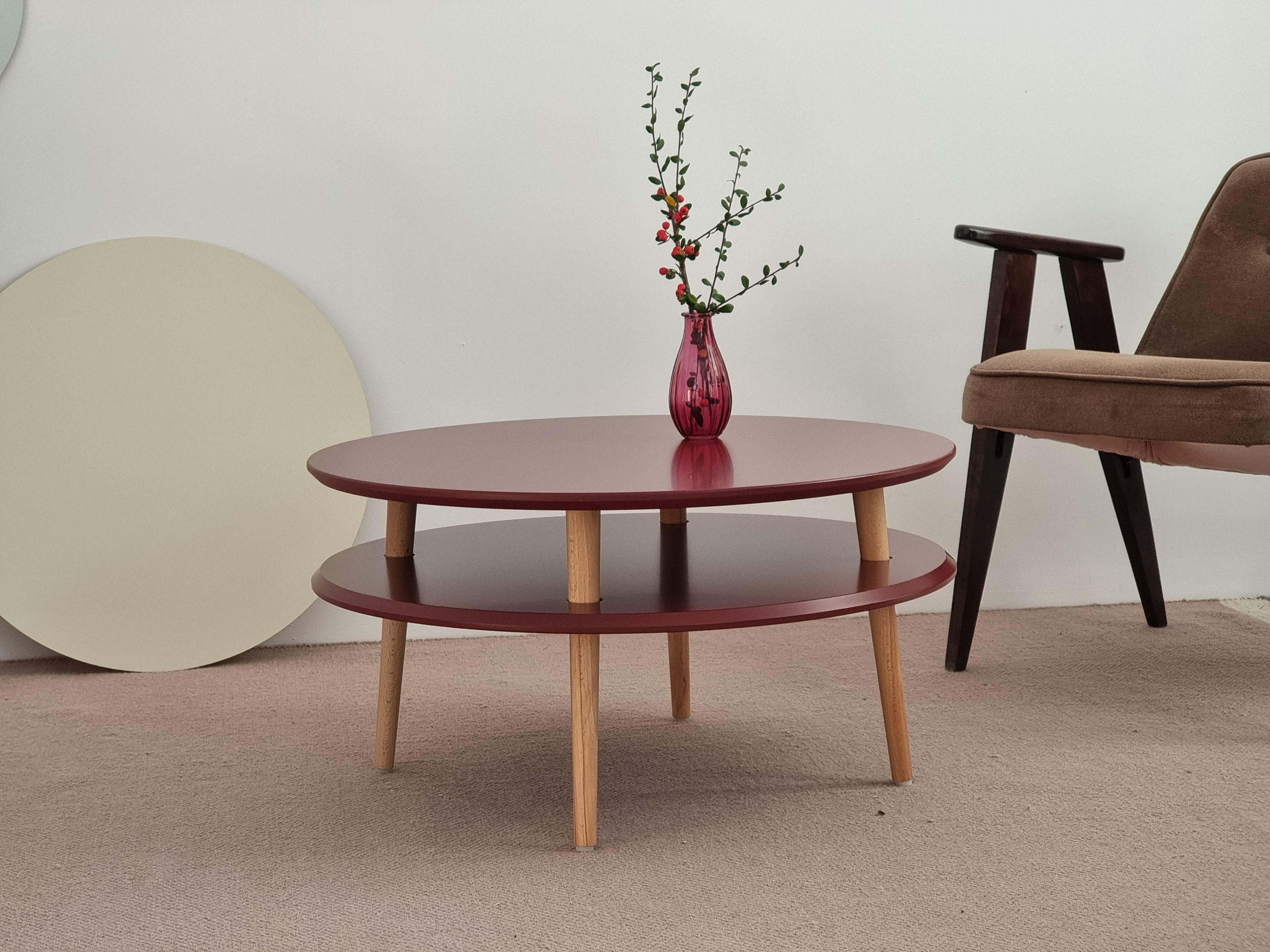 Recently, one of our clients ordered our UFO coffee table in a stunning wine-red shade. We loved the result so much that we decided to photograph it-and we are excited to share it, as we believe many of you will appreciate this beautiful colour too.