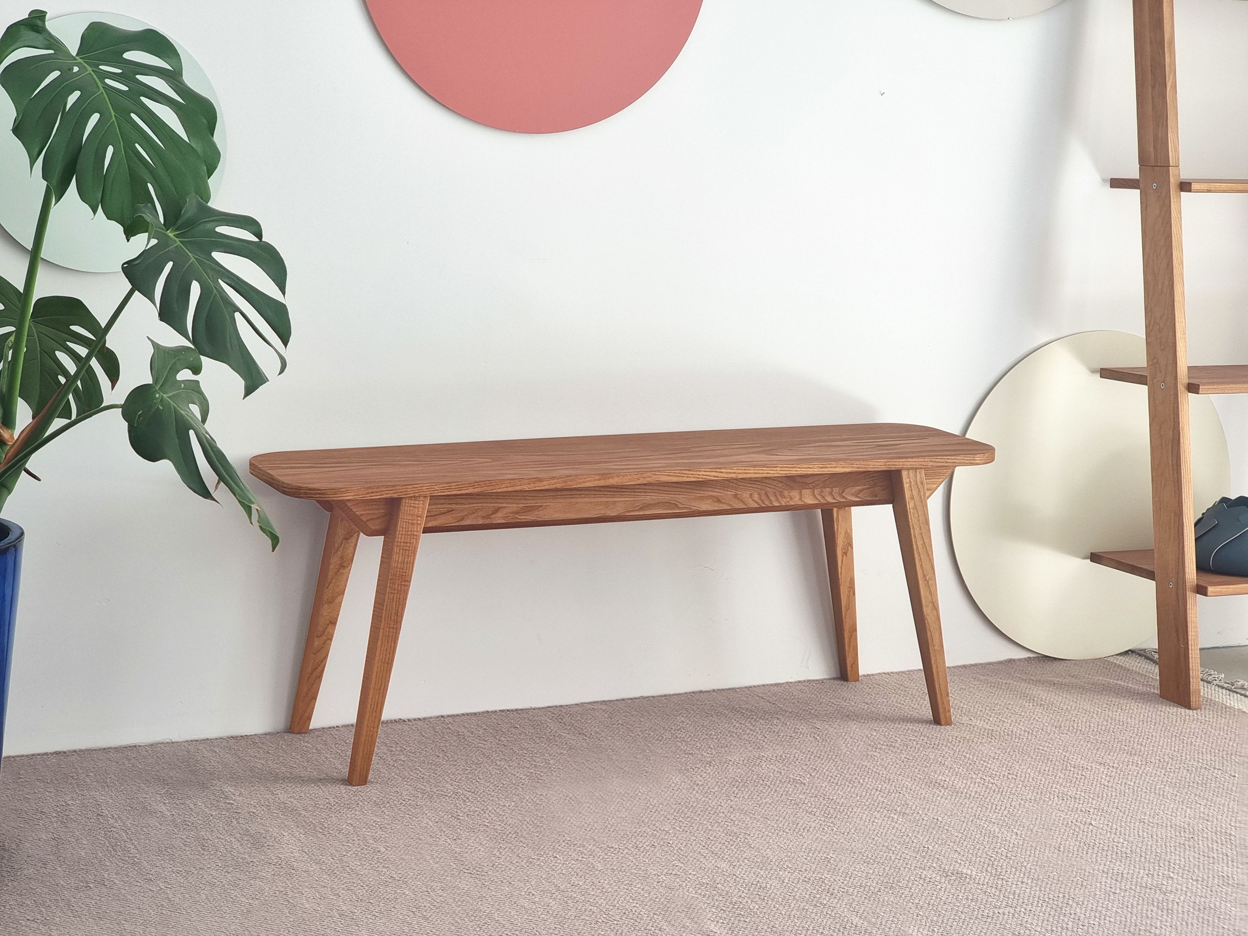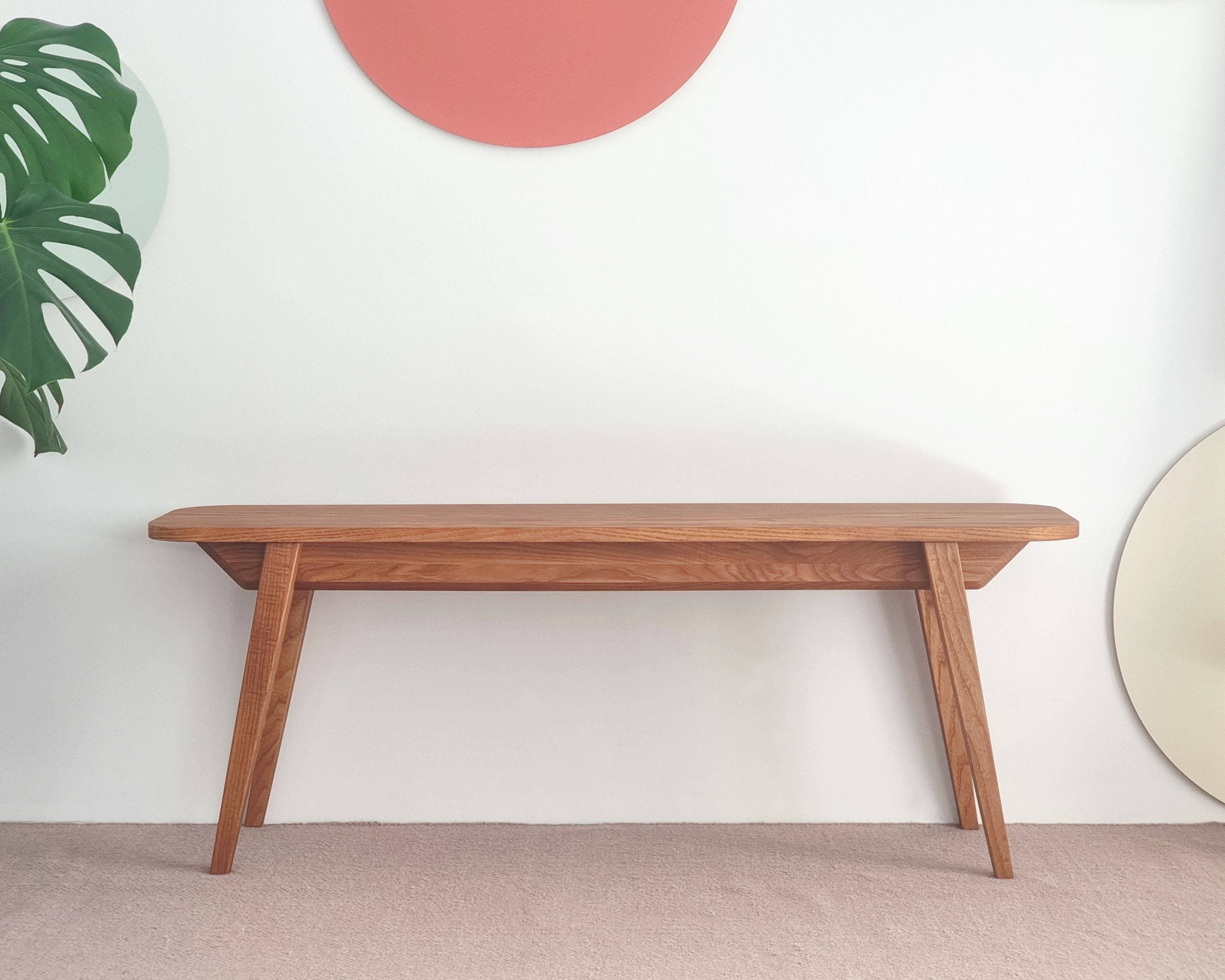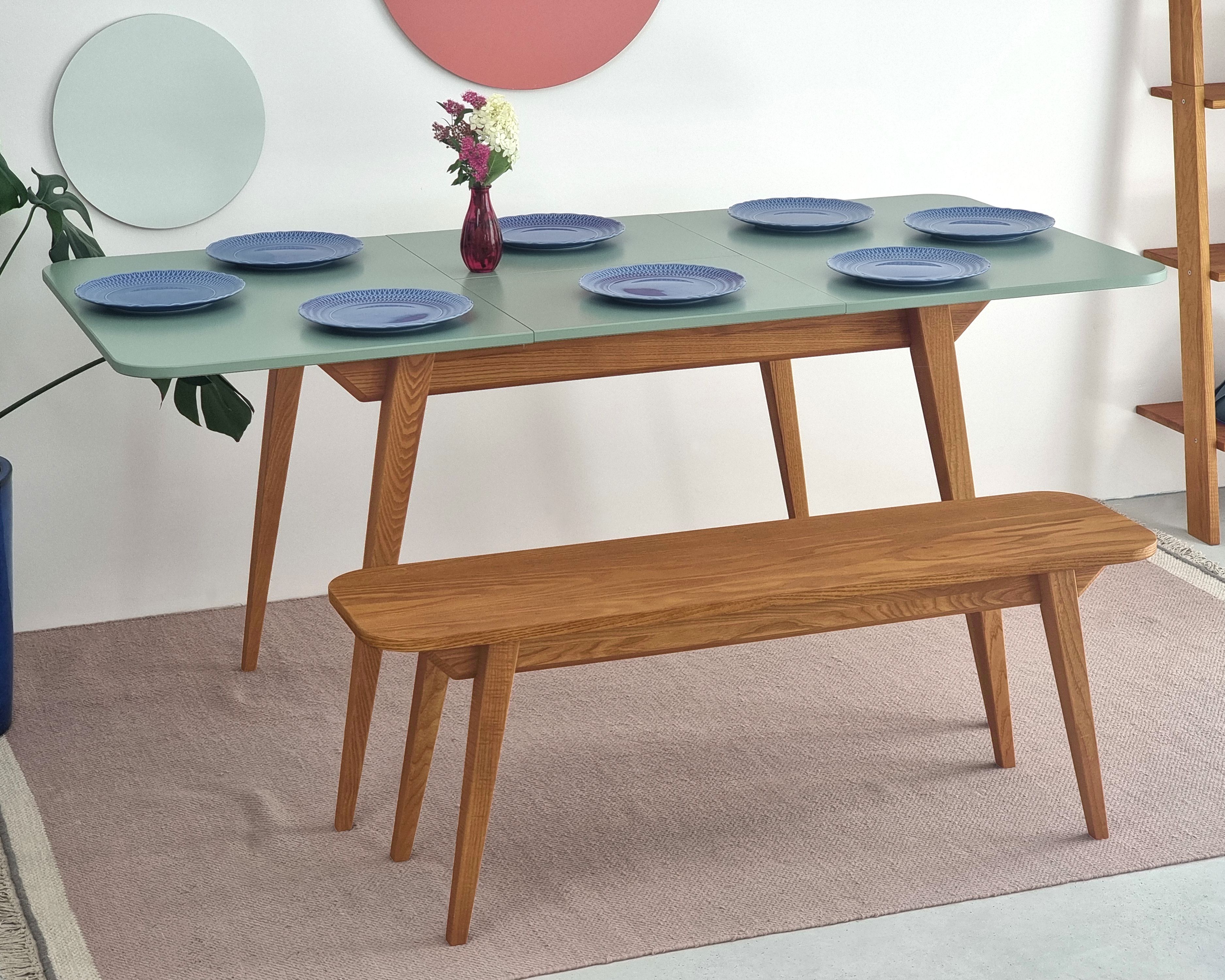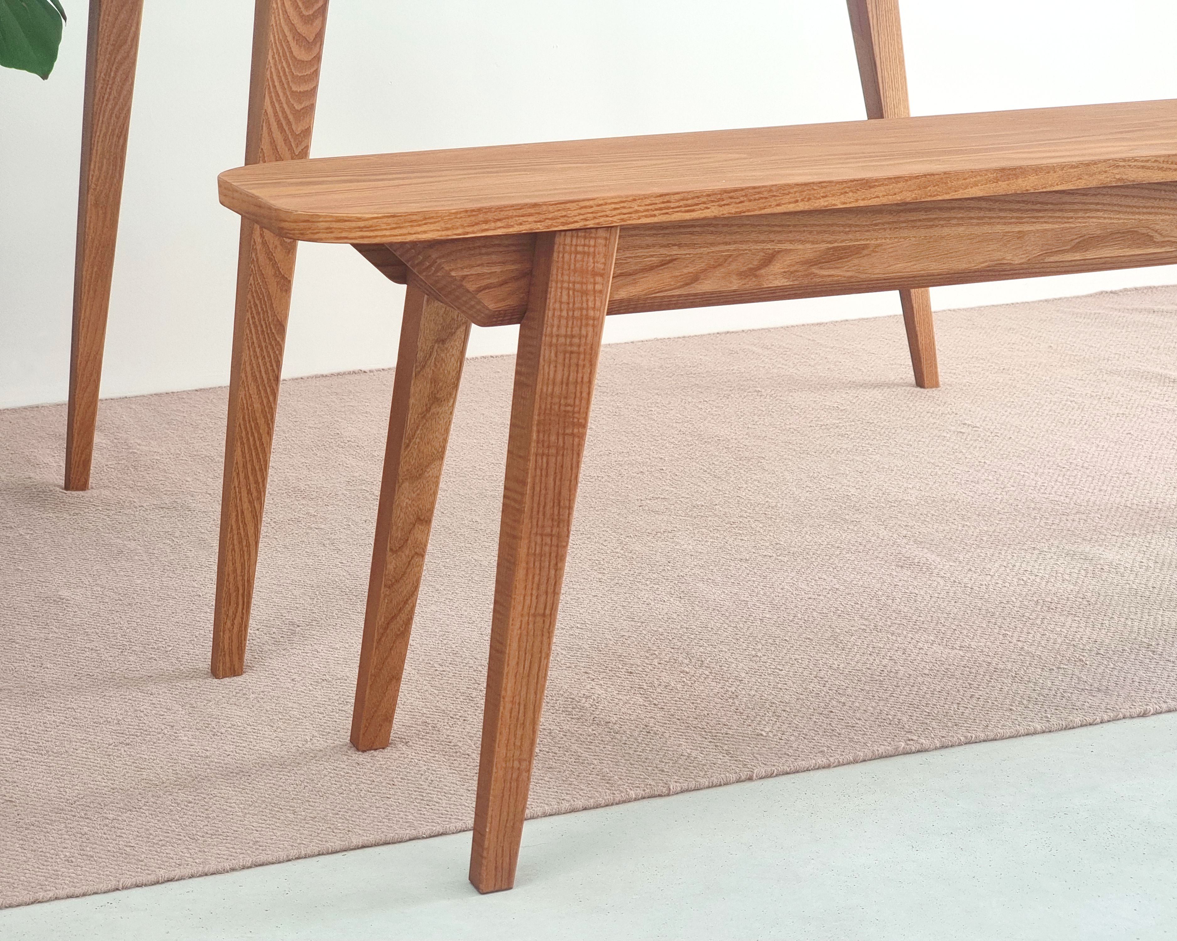 Our table bench wood comes in a range of finishes – natural ash, oak, walnut, black, or white – so you are sure to find the perfect shade to match your décor. The oak dining bench version, featured in the pictures, has a warm and timeless tone that enhances the cozy character of any interior.