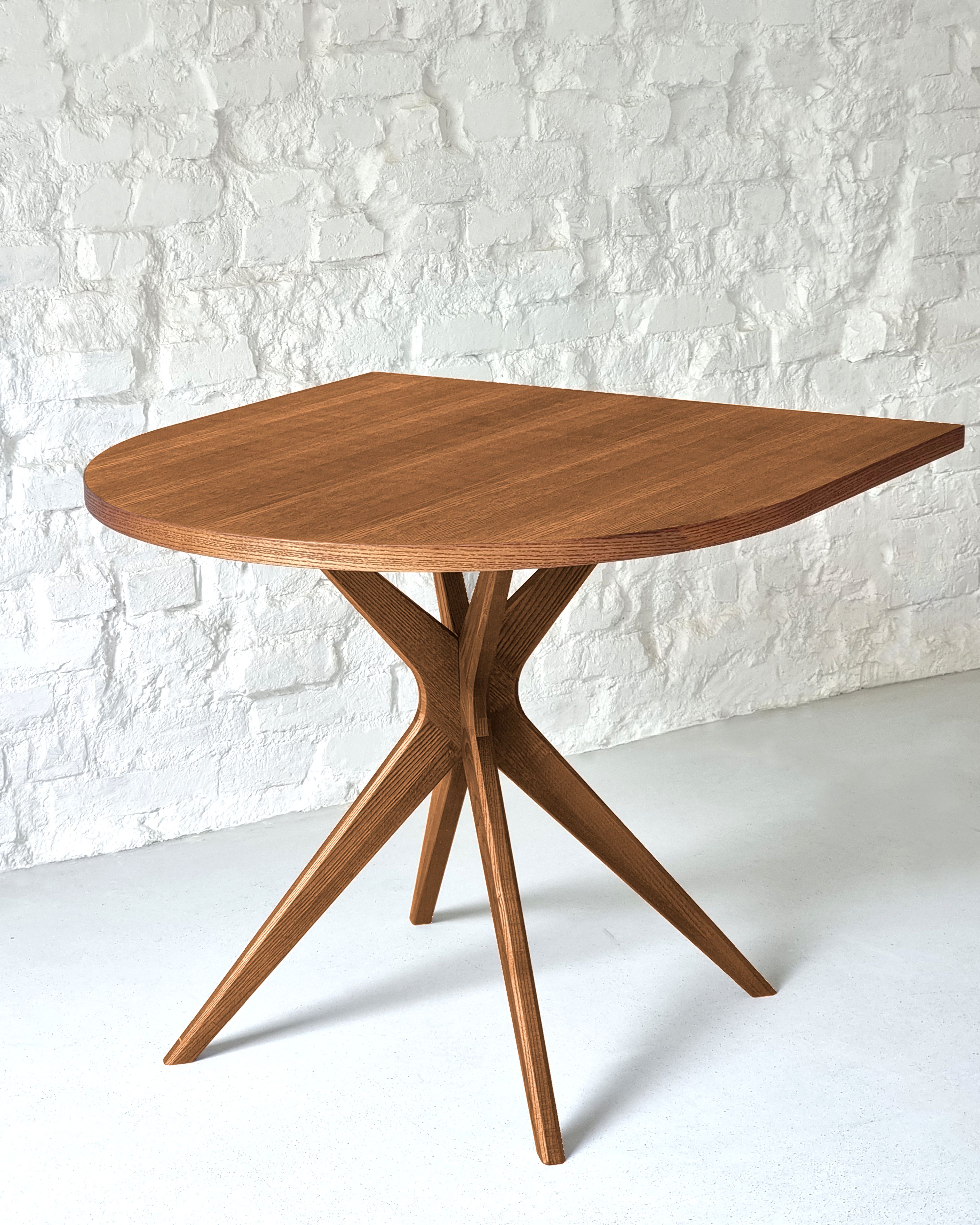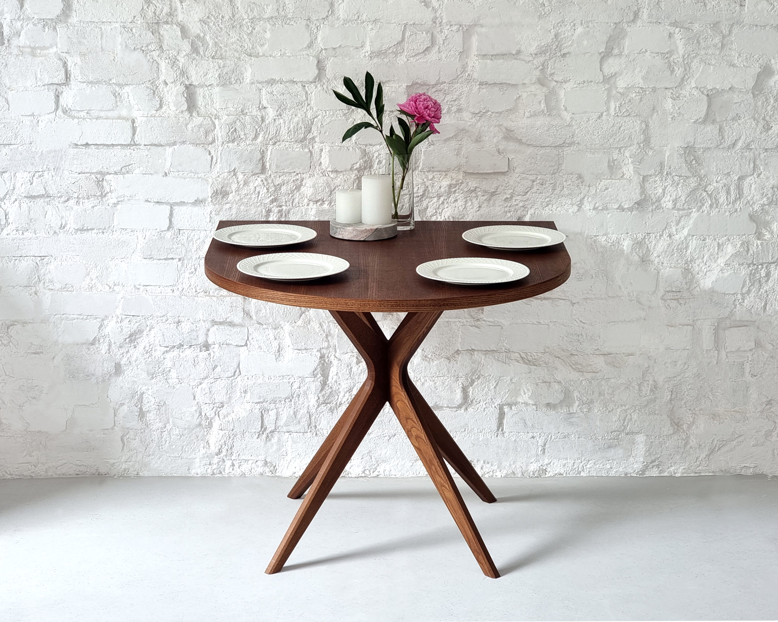 An interesting solution for such spaces is a dining table in the shape of a half racetrack. The half racetrack dining table is a functional piece of furniture and, most importantly, it saves a lot of space because it's a small dining table that can be placed against the wall. A small half oval dining table is perfect for the living room, dining room, or kitchen and can also be used as an extra counter. A small half oval table seat up to 4 people, and each person can sit comfortably as the table top is spacious. A table like this can also be used as a dining table for 2.