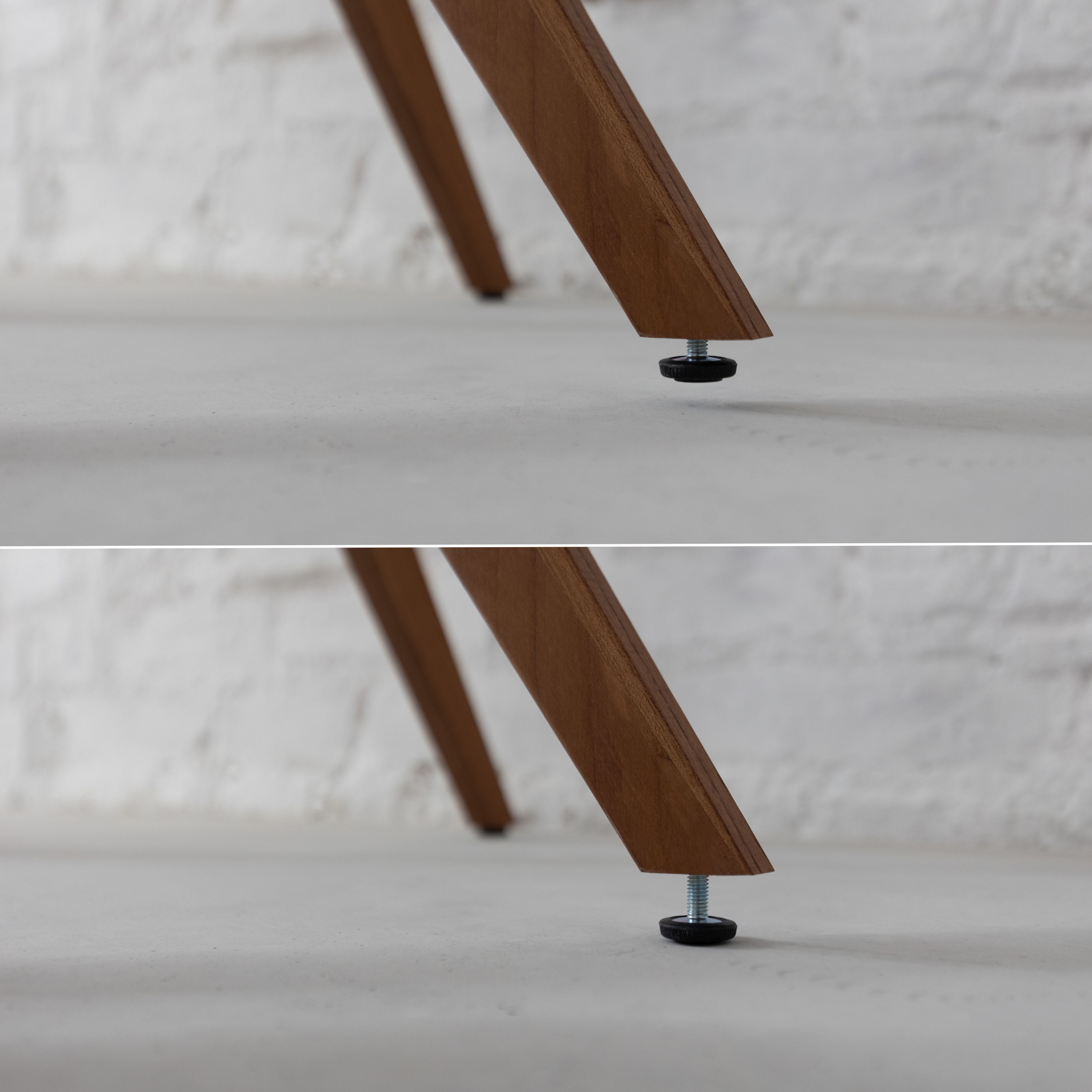 Other functional features of the Jubi wooden dining table include adjustable feet. You never have to worry about the stability of your dining table thanks to these small elements. They ensure that the compact dining table is comfortable to use even when the floor surface is uneven.