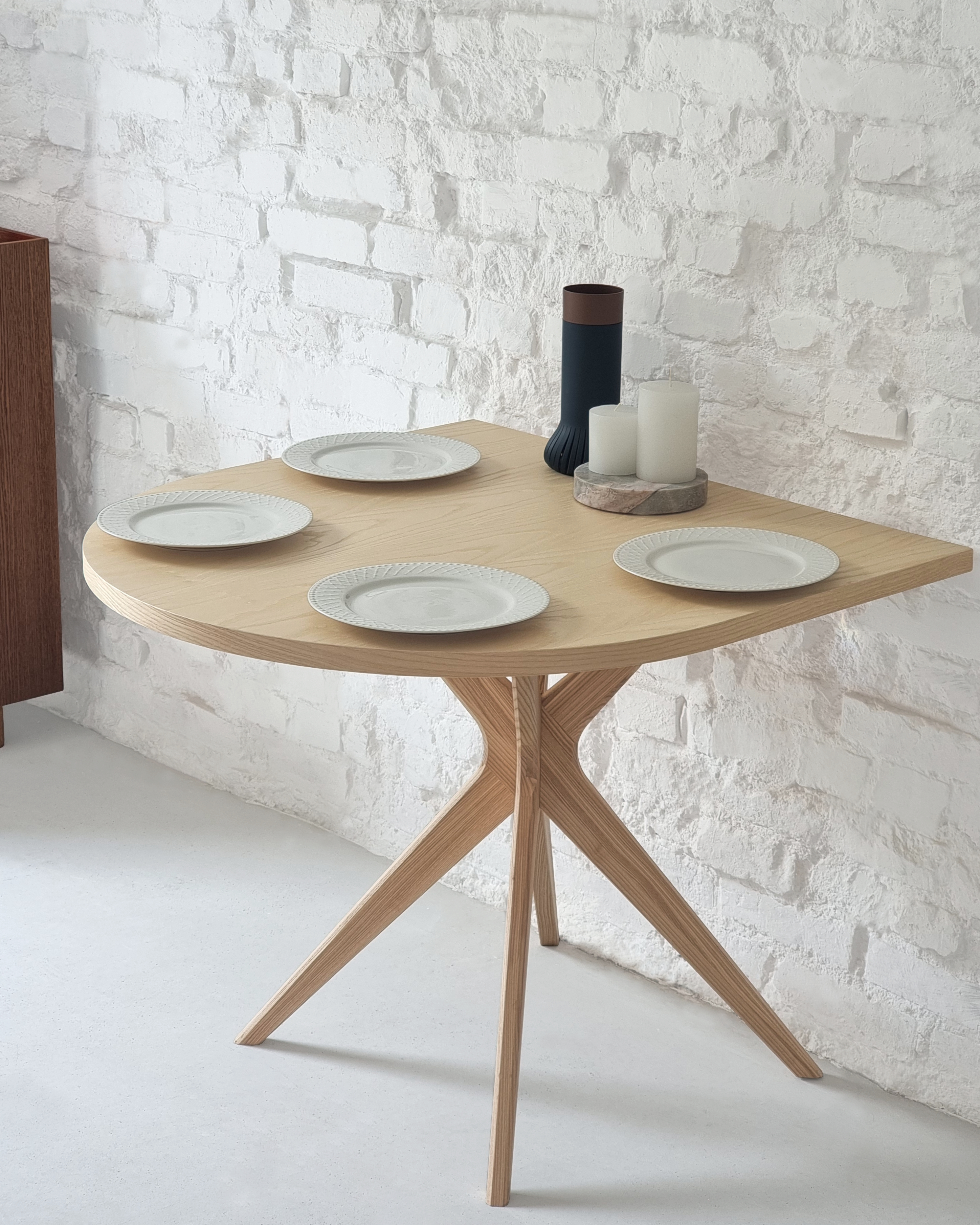 When you choose the table for small spaces, you should also pay attention to the arrangement of the legs. With a traditional dining table with sharp corners, there is no use of all the edges of the table. When entertaining, it is sometimes necessary to sit in the corner, which can be very uncomfortable as you may bump into the corner or leg of the table. Having one leg dining table with rounded corners is a very safe option, particularly in narrow spaces, and allows you to use the full length of the tabletop, so you can accommodate more people. In addition, the table leg does not interfere with guests' legs.