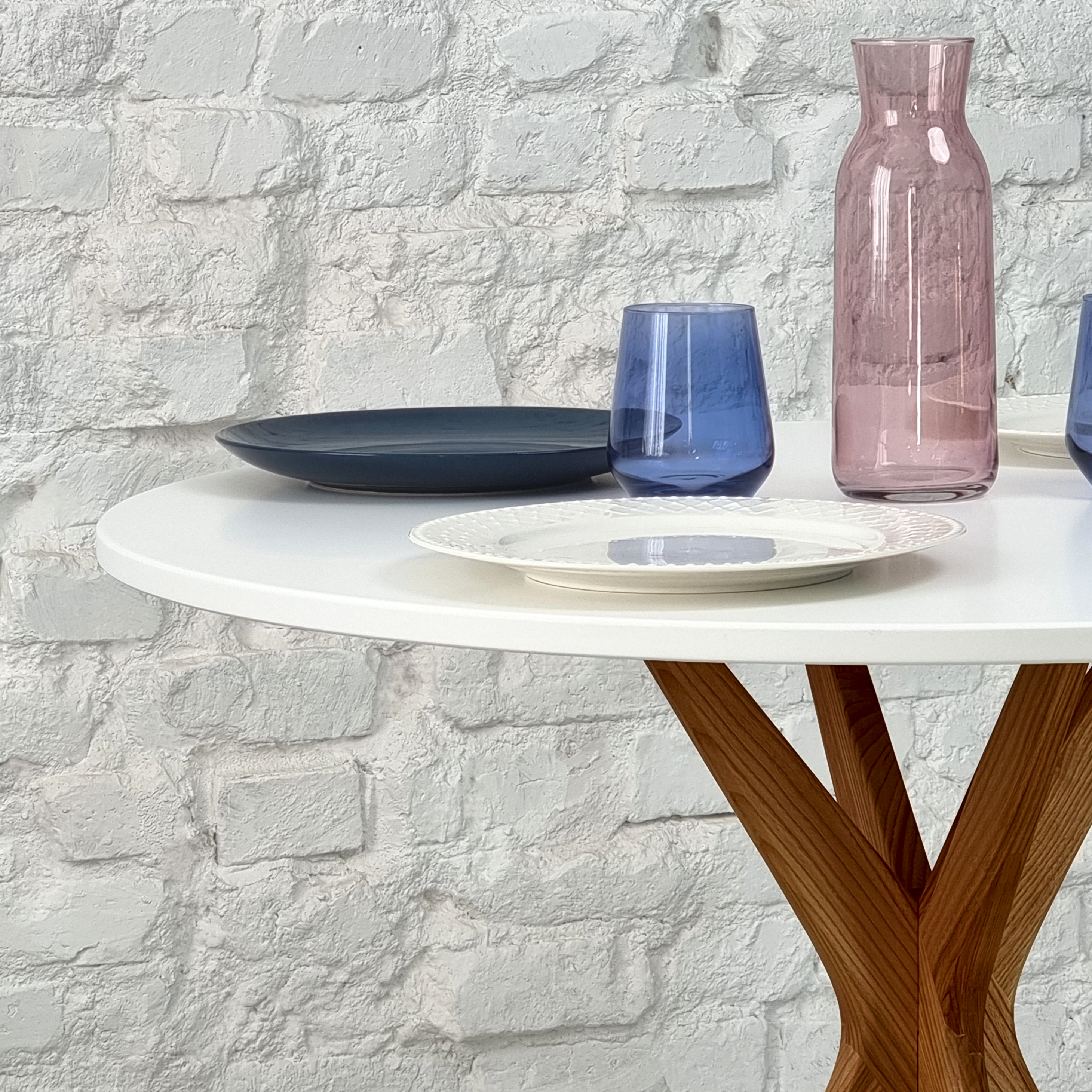 The small round dining table Jubi comfortably seats four, functioning as a practical 4 seater dining table for daily meals or entertaining guests. Thanks to its pedestal table base, there’s no interference from legs, allowing everyone to sit comfortably around the entire round tabletop.