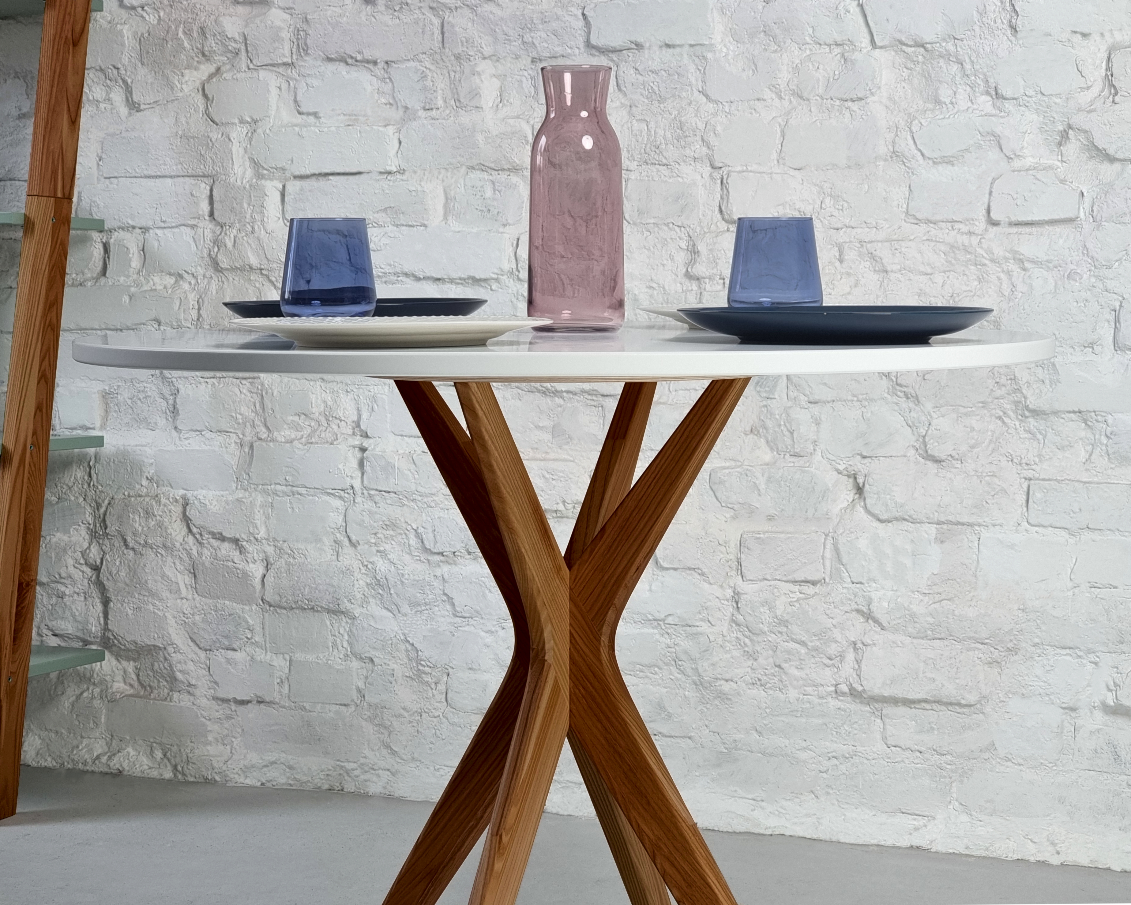 Available in four convenient sizes—60cm, 70cm, 80cm, and round dining table 90cm—this small dining table lets you choose the best fit for your home. The surface is laminated and lacquered for durability and easy cleaning, while the solid ashwood legs, equipped with adjustable feet, ensure stability on any surface.