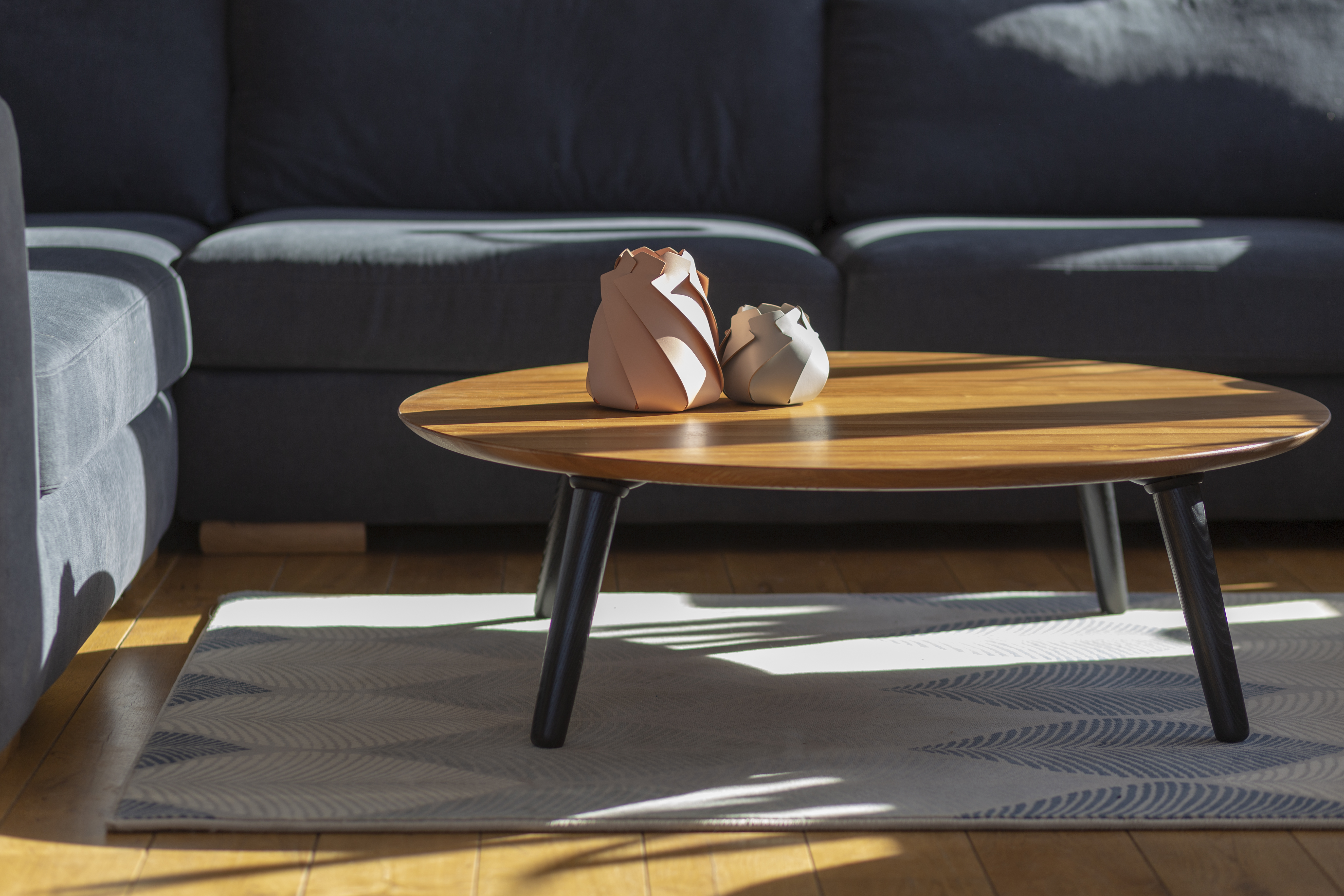 Nous sommes une marque certifiée FSC. Cela signifie que le bois que nous utilisons dans notre production provient de sources contrôlées, garantissant la durabilité des forêts. Nous croyons que la durabilité est une priorité pour prendre soin de l’environnement qui nous entoure. De plus, 75 % de l’énergie que nous utilisons provient de notre parc photovoltaïque. Nous sommes également fiers d’utiliser des emballages recyclables - sans polystyrène, sans plastique, et comme remplissage, nous utilisons du paillis fabriqué à partir de vieux cartons, journaux, etc. Par ailleurs, nous ne laquons pas complètement le dessous de nos produits, car ces éléments ne sont pas visibles lorsqu’ils sont utilisés. Le laquage d’une partie non visible est un processus gourmand en matériaux et en énergie que nous pensons devoir éviter.