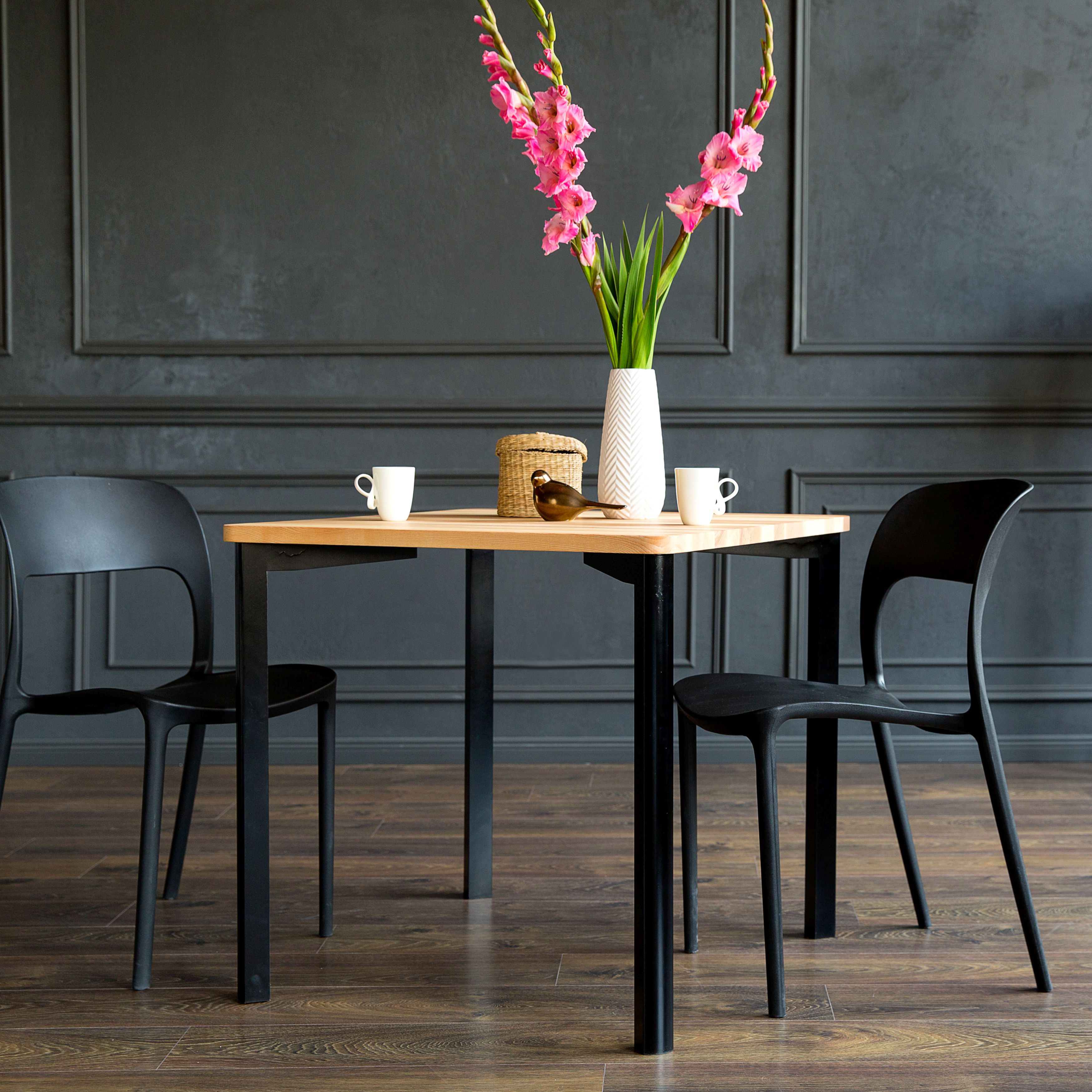 TRIVENTI Table de salle à manger en frêne 80x80cm - Pieds ronds noirs