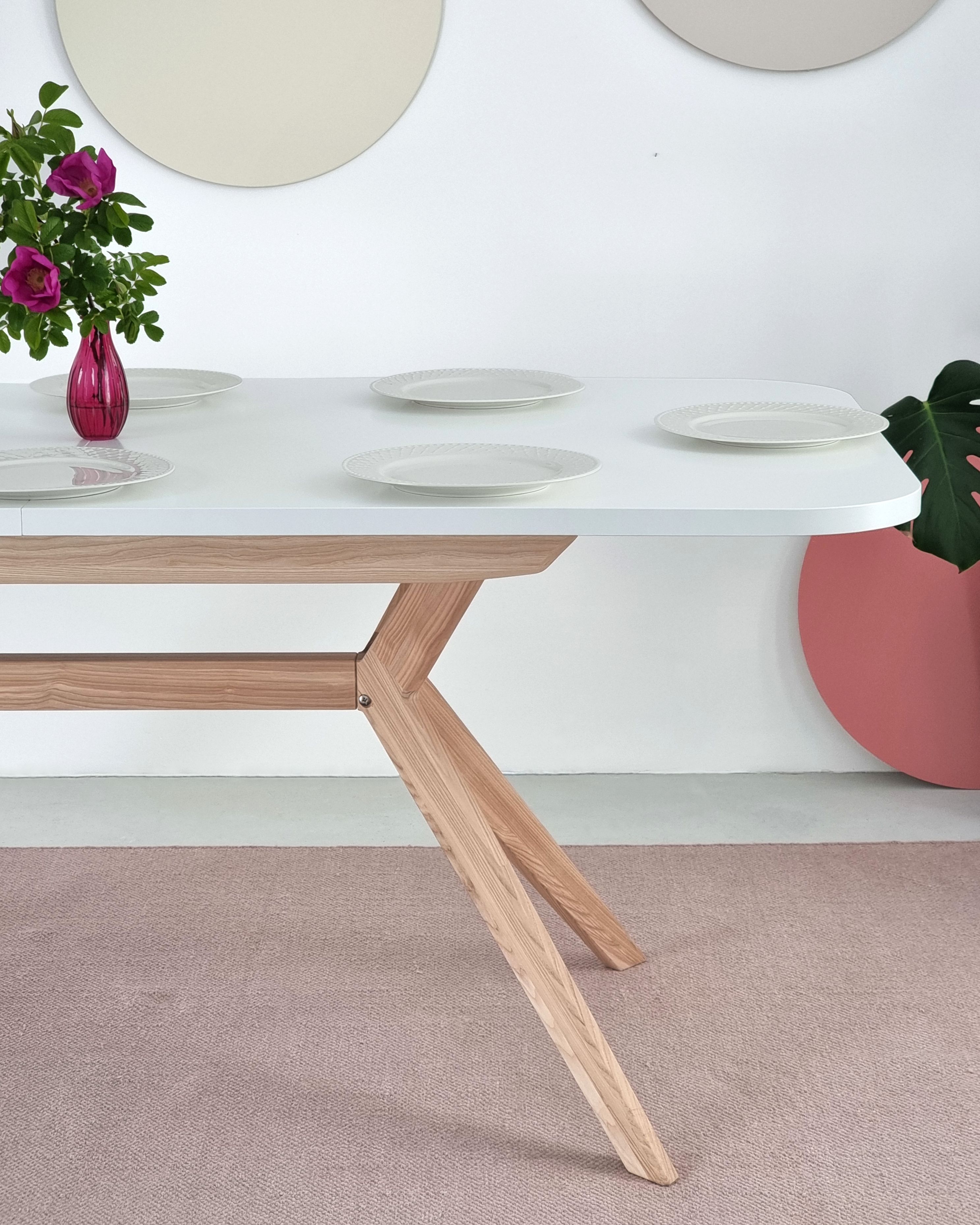 Table pour 8 personnes, extensible jusqu’à 10 pour accueillir des invités supplémentaires. La section coulissante se range à l’intérieur de la table pour un accès facile, et la conception des pieds permet une utilisation complète du plateau sans gêne. Les bords arrondis assurent confort et sécurité pour tous.