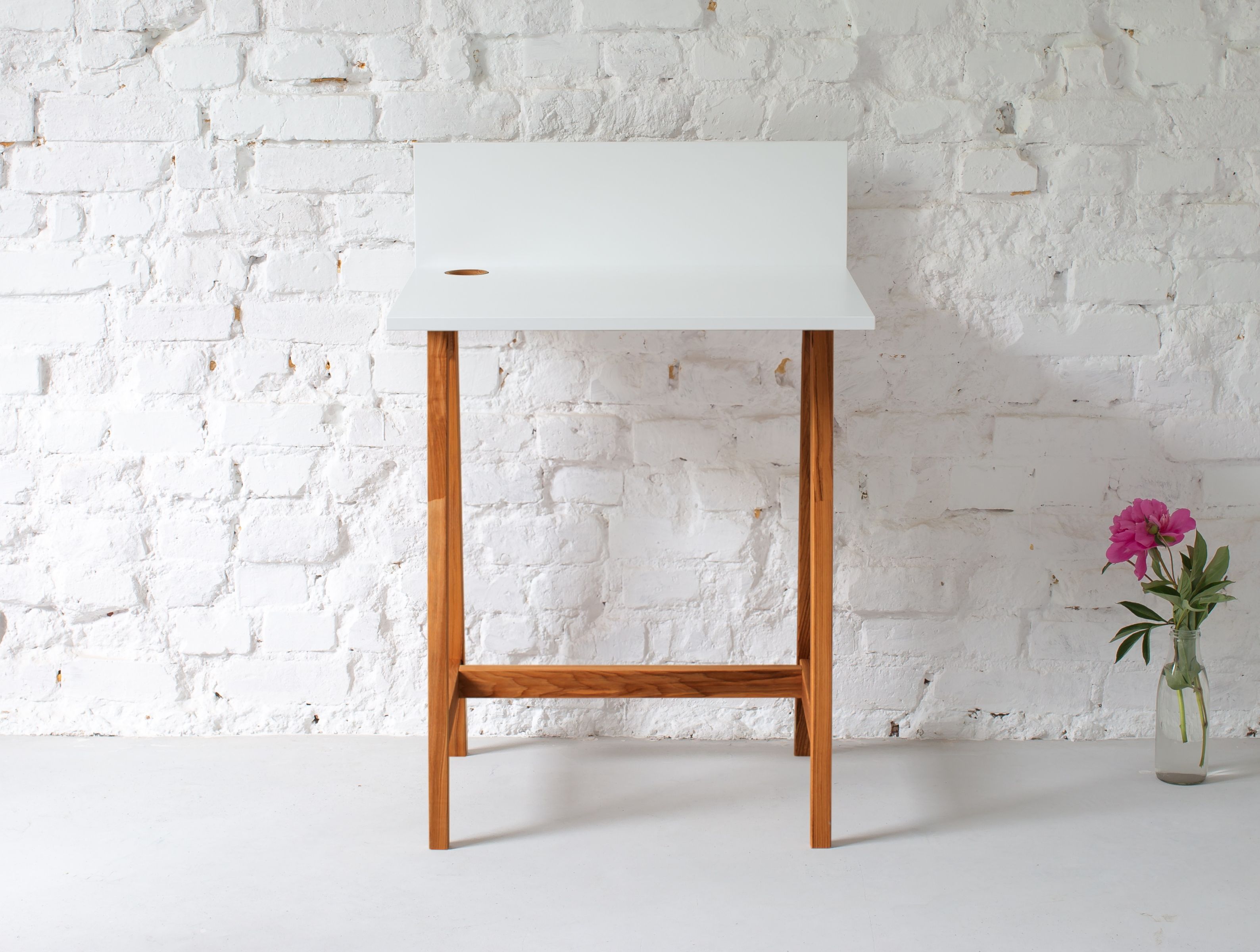 LUKA Bureau en bois de frêne 85x50cm avec tiroir Chalk White