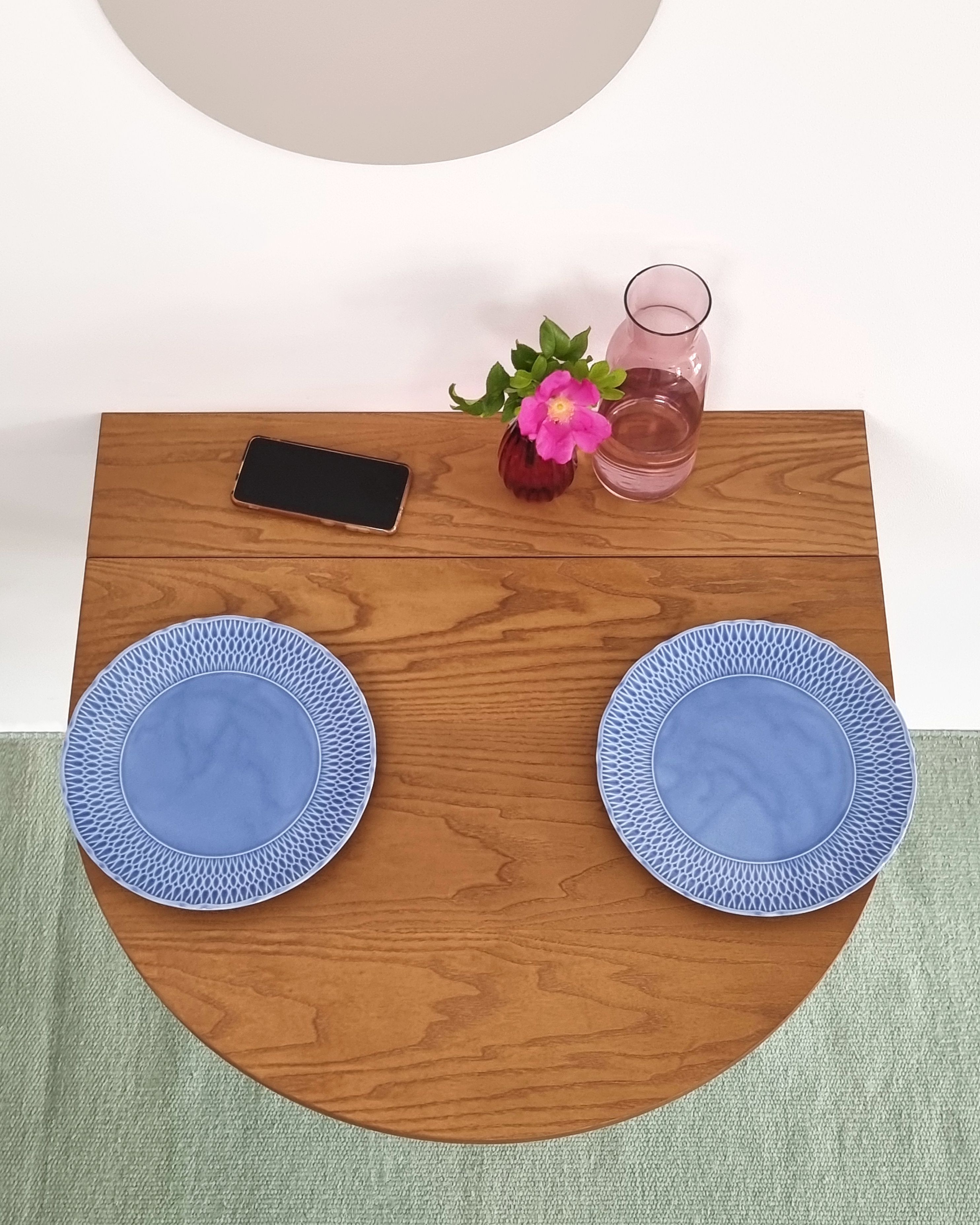 La table pliante demi-ovale Klapp est un excellent exemple de ce type de design polyvalent. Cette petite table pliante peut servir à de multiples usages — que vous ayez besoin d’une table à manger pliante, d’un bureau pliant, ou simplement d’un espace de comptoir supplémentaire. Comme il s’agit d’une table murale rabattable, elle peut être installée dans la cuisine, le salon ou même la chambre. Vous pouvez également la fixer à la hauteur qui vous convient le mieux, ce qui la rend encore plus pratique à utiliser.