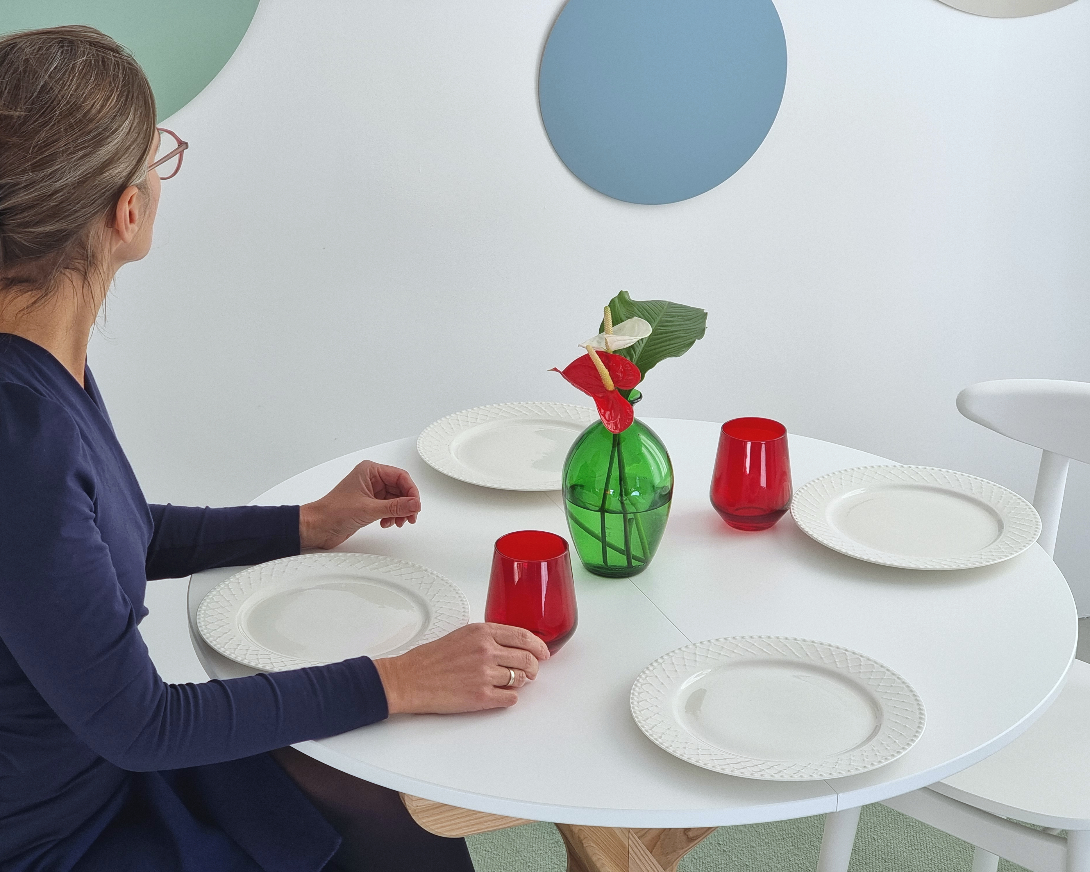 Découvrez la table à manger extensible Jubi ici : TABLE À MANGER RONDE EXTENSIBLE JUBI