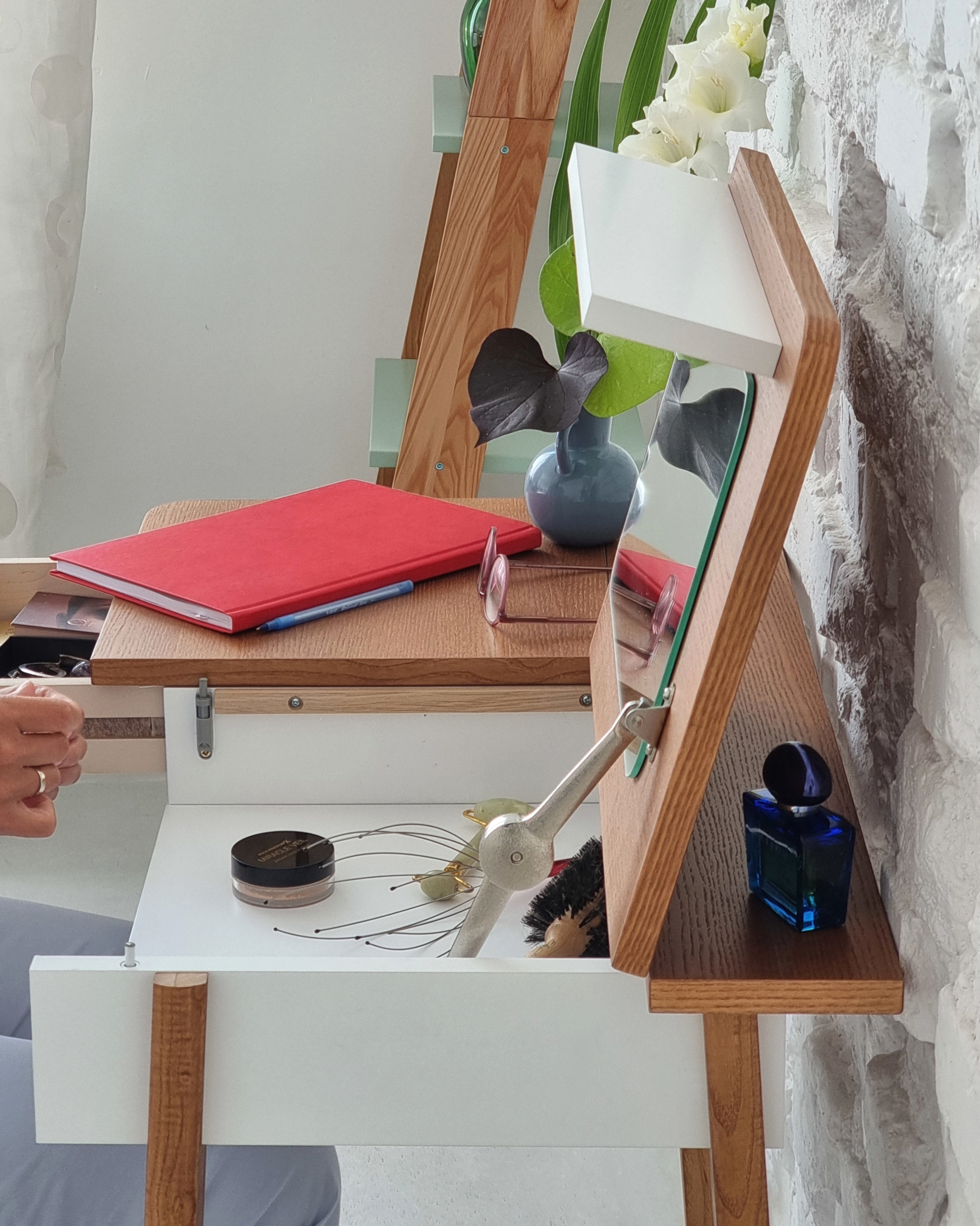 Découvrez la coiffeuse et le bureau MeWise en un sur notre site web : MEWISE